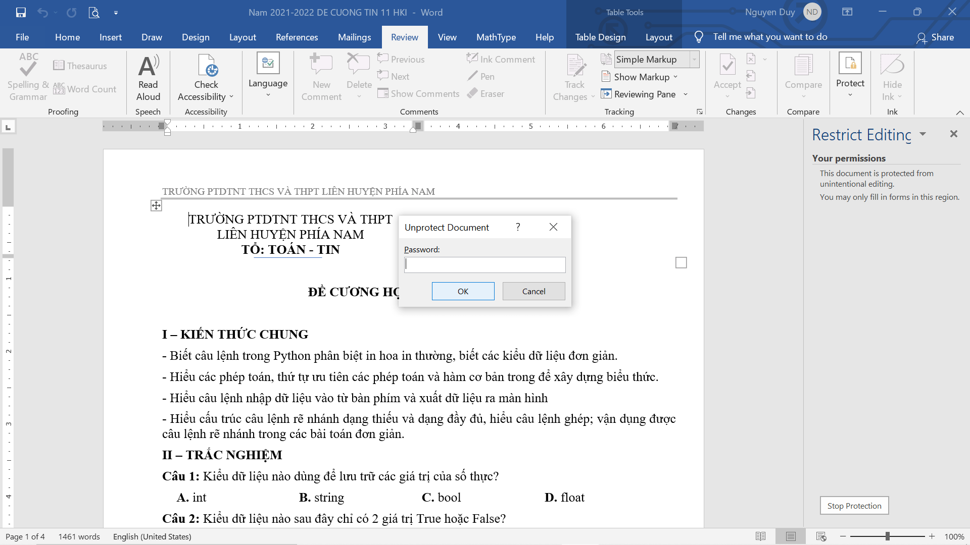 Bảo vệ tài liệu Word chống sao chép, chỉnh sửa văn bản