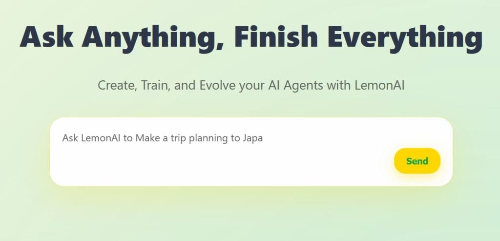 Với Lemon AI, người dùng không cần viết mã phức tạp. Nền tảng hỗ trợ giao diện trực quan, cho phép bạn mô tả nhiệm vụ của agent bằng ngôn ngữ tự nhiên. LemonAI sẽ tự động xây dựng một agent phù hợp có thể thực hiện các hành động cụ thể như tra cứu thông tin, xử lý dữ liệu, gửi email, hoặc tương tác với các hệ thống khác. Điều này giúp quá trình tạo agent trở nên nhanh chóng và dễ dàng, kể cả với người mới bắt đầu.
