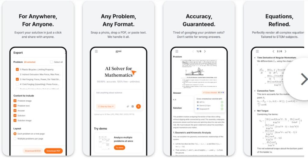 Một trong những tính năng nổi bật của GPAI là khả năng giải bài tập bằng AI. Người dùng có thể nhập nội dung bài toán hoặc chụp ảnh bài tập, hệ thống sẽ phân tích và đưa ra lời giải chi tiết theo từng bước. Điều này không chỉ giúp người học kiểm tra đáp án mà còn giúp hiểu rõ bản chất và phương pháp giải, đặc biệt hữu ích với các bài toán khó hoặc có tính học thuật cao.