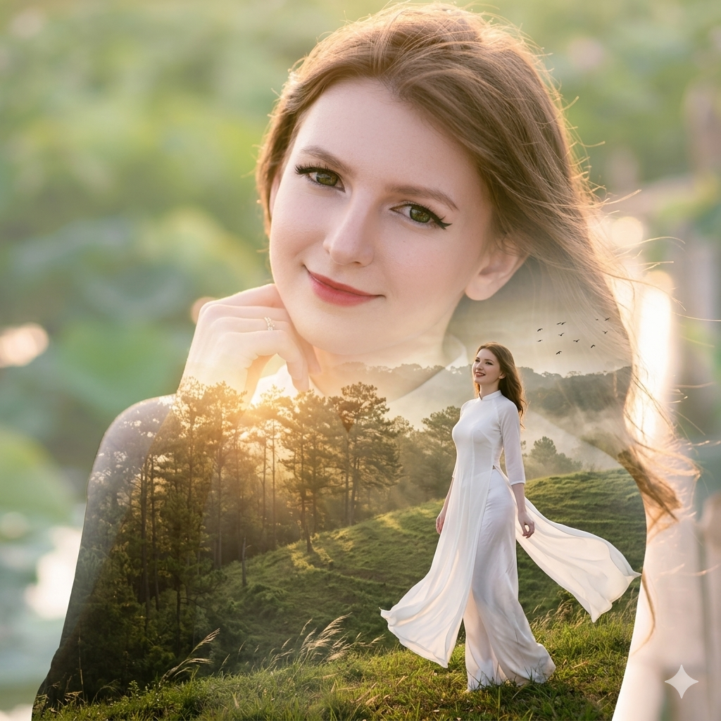 Trí tuệ nhân tạo đang mở ra một xu hướng mới trong nhiếp ảnh sáng tạo, đặc biệt là phong cách double exposure portrait – ảnh chân dung kết hợp với cảnh thiên nhiên bên trong khuôn mặt. Hiệu ứng này thường thấy trong các poster điện ảnh, ảnh bìa tạp chí hoặc các bộ ảnh thời trang cao cấp. Nhờ các công cụ AI tạo ảnh như Gemini (Imagen), Midjourney hay Stable Diffusion, bất kỳ ai cũng có thể tạo ra những bức ảnh nghệ thuật ấn tượng chỉ với một bức ảnh chân dung và một prompt phù hợp.